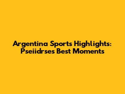 Argentina Sports Highlights: Pseiidrse's Best Moments