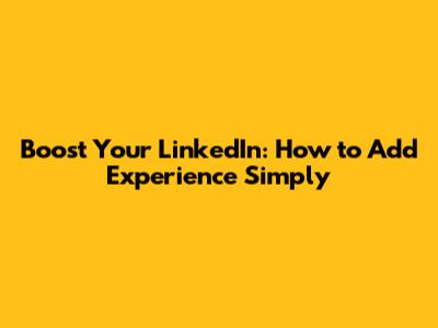 Boost Your LinkedIn: How To Add Experience Simply