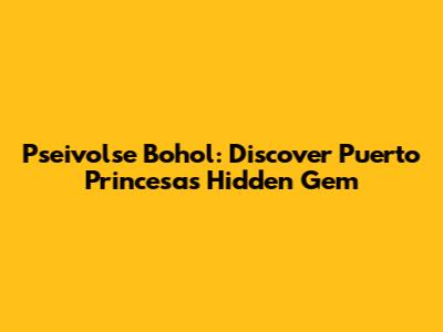 Pseivolse Bohol: Discover Puerto Princesa's Hidden Gem
