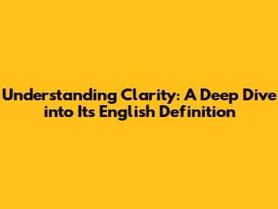 Understanding Clarity: A Deep Dive Into Its English Definition